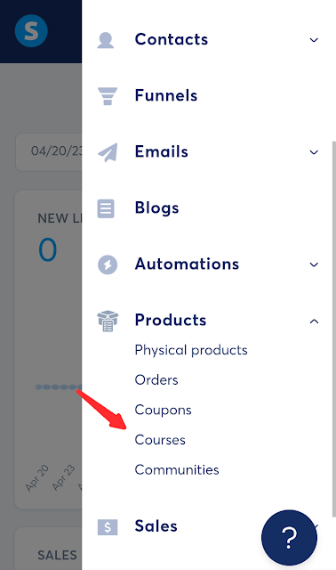 | Click on the one that says "courses" under product |